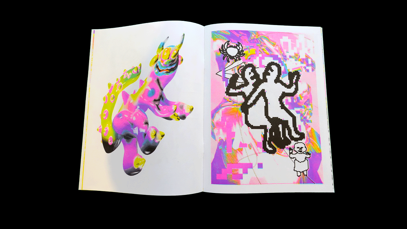 New experimental work from Sam Bailey that, at times, drags 3D sculpture into two dimensions; or adds body to flat image by intentionally offsetting the different print layers. This multi-dimensional approach is informed by PS1 graphics and bootlegged toys.